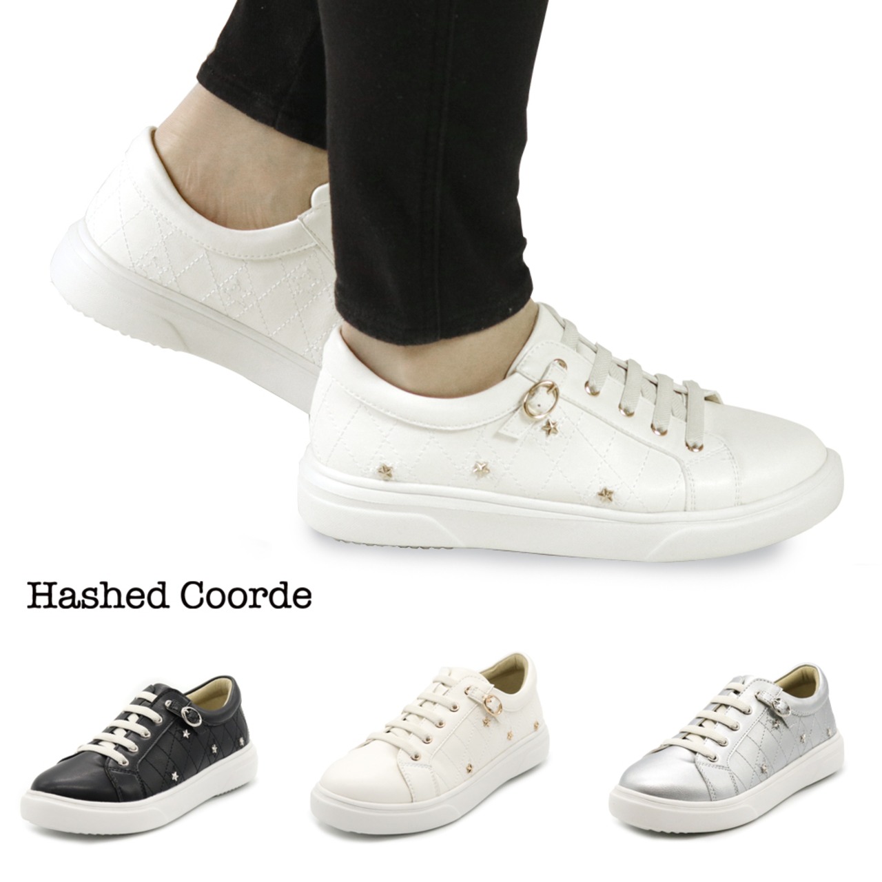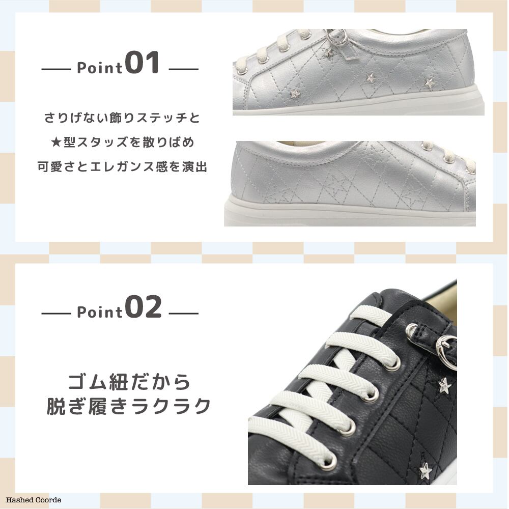 Hashedcoorde ゴム紐コートスニーカー HC4613 ハッシュドコーデ