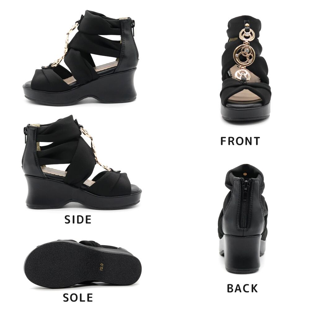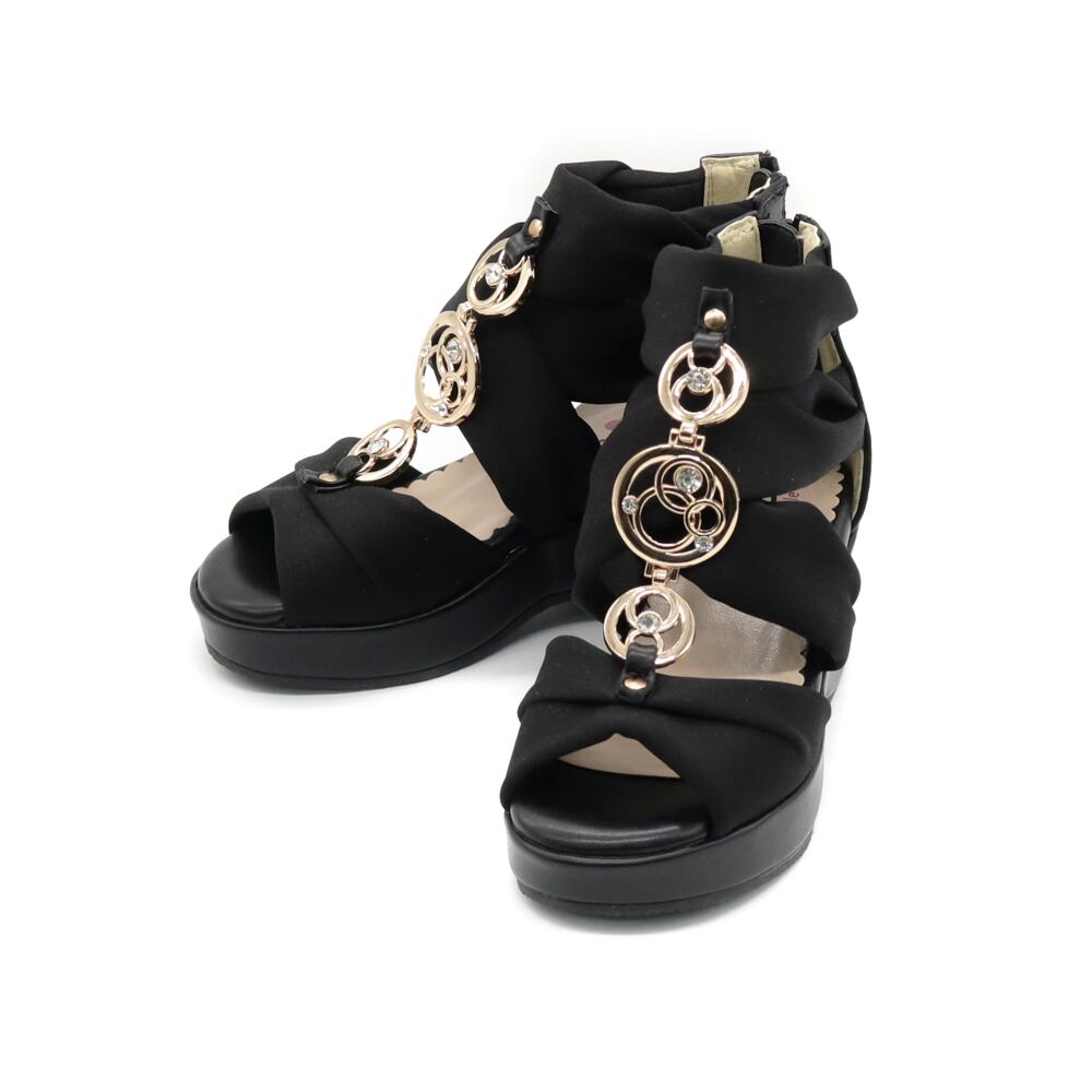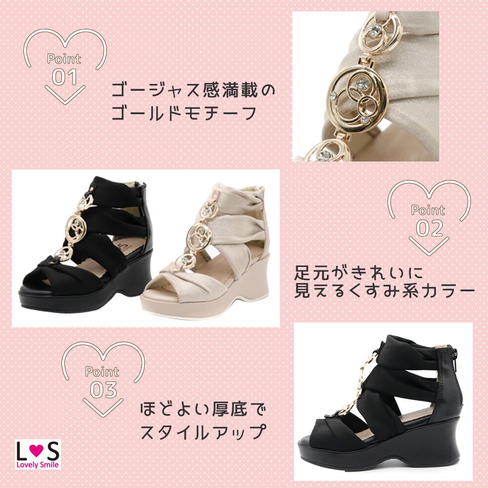 ・ゴージャス感あふれるゴールドモチーフが足元に華やかさをプラスし、コーディネートの主役として映える一足です。