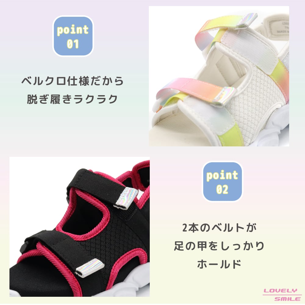・着脱はラクラクなベルクロ仕様。忙しい朝やお出かけ前でもサッと履けて、フィット感の調整も簡単です。