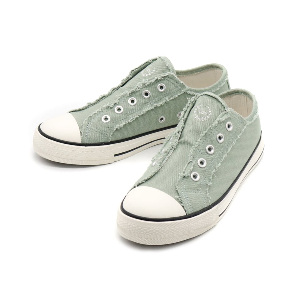 さらにカットオフ加工でラフな風合いがハッシュドコーデのひもなしスリッポンの特徴です。
