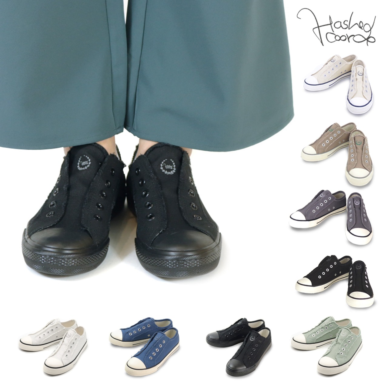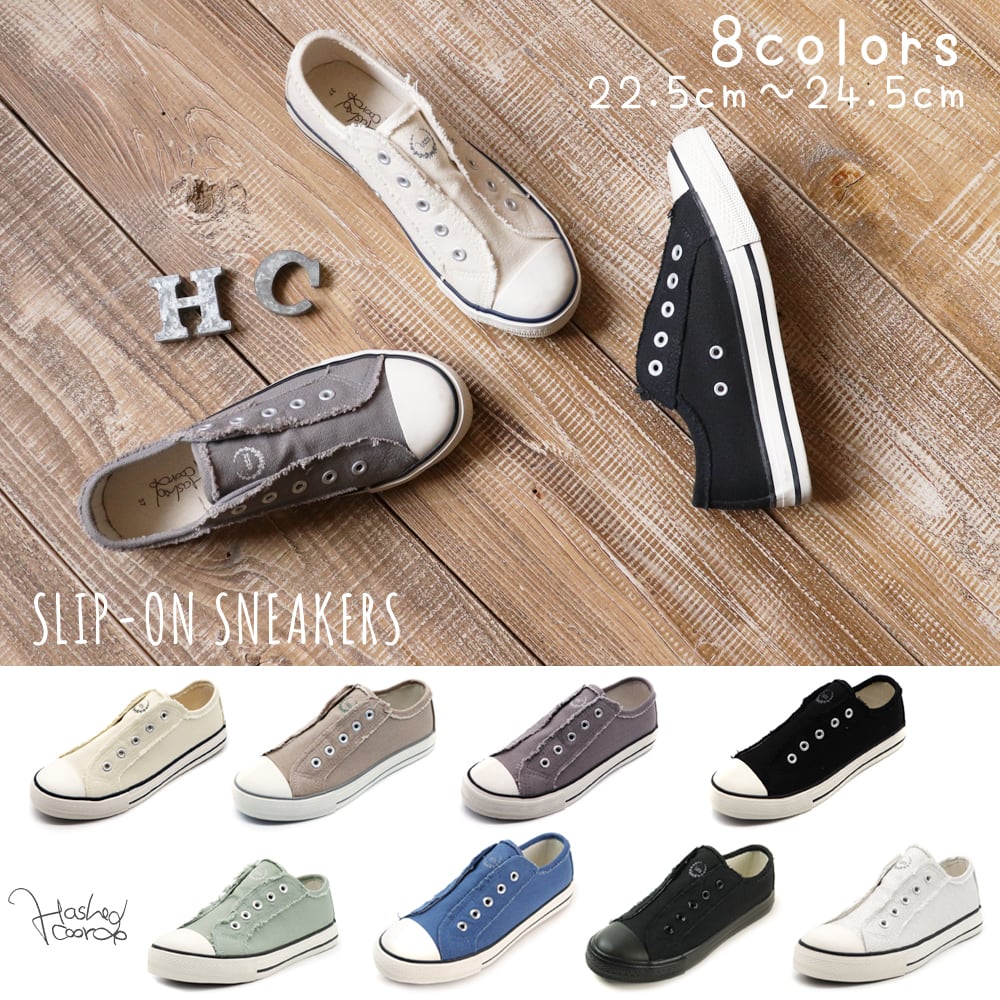 ハッシュドコーデひもなしスリッポンスニーカー定番カラー