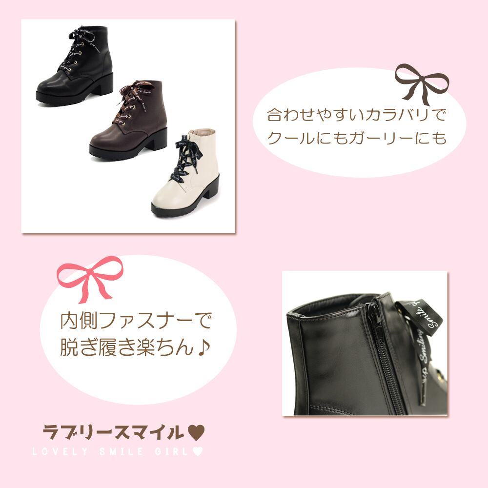 【KIDS】リボンレースアップショートブーツ LS3520 ラブリースマイル